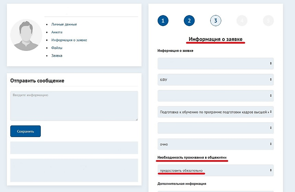 After receiving an invitation for the allocation of a dormitory bed space at Kazan Federal University (KFU) for the period of your studies, you must confirm your need for accommodation in your personal account by selecting «предоставить обязательно» in the designated field.
