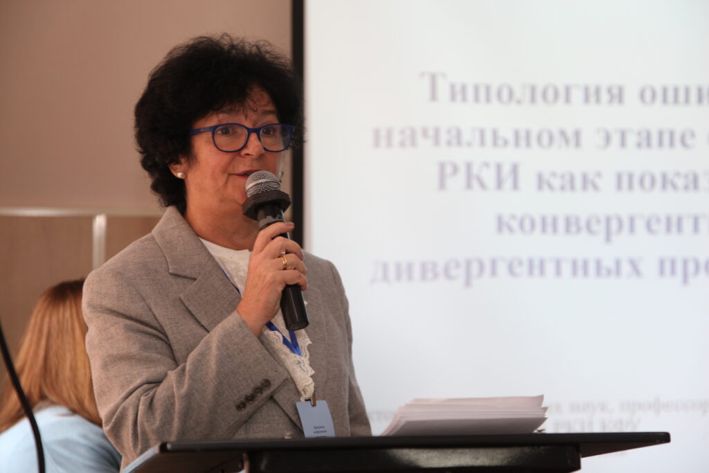 Наталия Викторовна выступила на пленарном заседании с докладом, посвящённым типологии ошибок на начальном этапе обучения РКИ.